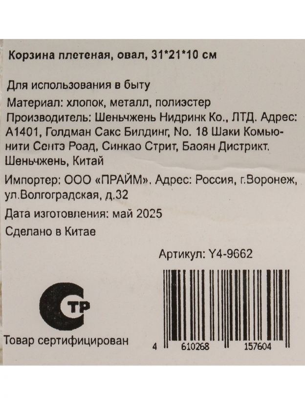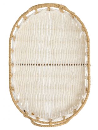 Корзина плетёная овальная 31х21х10 см с текстильной вкладкой — это универсальный аксессуар для хранения и декора. Благодаря среднему размеру она отлично подходит для организации мелочей, косметики, рукоделия, детских игрушек, фруктов или хлеба. Белый цвет впишется в любой интерьер — от скандинавского до классики. В отличие от аналогов из ротанга, корзина сочетает лёгкость хлопка, прочный металлический каркас и долговечность полиэстера, что обеспечивает устойчивость формы и простоту ухода.
