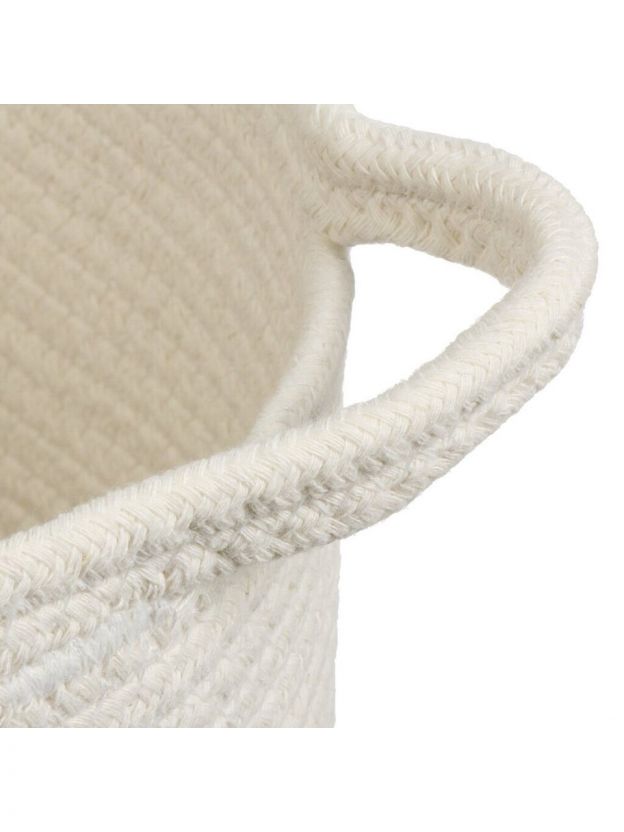 Корзина выполнена из качественного хлопка, что делает ее не только легкой, но и прочной. Белый цвет корзины добавляет свежести и чистоты в любой интерьер, а наличие ручек позволяет легко перемещать ее по дому. Это отличное решение для тех, кто ценит удобство и стиль в каждой детали.