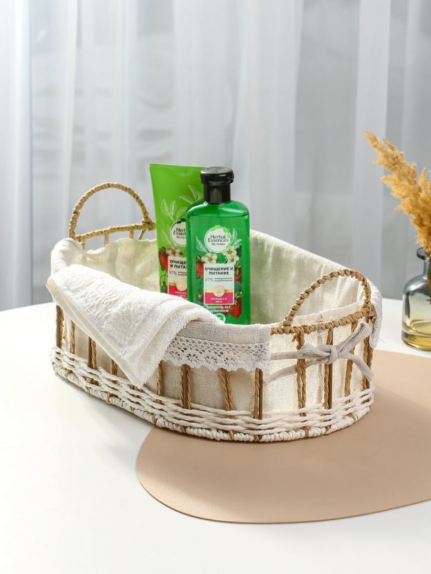 Плетёная корзина овальной формы с текстильной вкладкой — это универсальное решение для хранения и декора. Благодаря среднему размеру (36х24х11 см) и ручкам, корзину удобно переносить даже при полной загрузке. Белый цвет и аккуратный дизайн легко впишутся в любой интерьер: от скандинавского до классики. Если вы ищете, какую корзину выбрать для белья, игрушек или аксессуаров, этот вариант сочетает в себе компактность и вместительность.