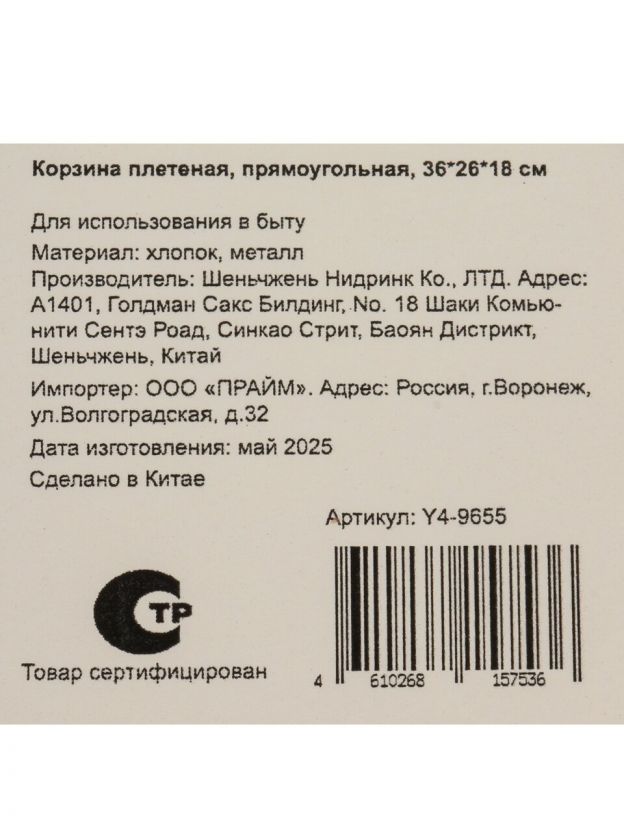 Плетёная корзина прямоугольной формы (36х26х18 см) — это современное решение для хранения и декора в стиле эко. Благодаря натуральному хлопку и прочному металлическому основанию корзина выдерживает ежедневную эксплуатацию, не деформируется и сохраняет эстетичный вид. Бежевый цвет универсален, хорошо сочетается с любым интерьером, а наличие ручек облегчает переноску даже при полной загрузке.