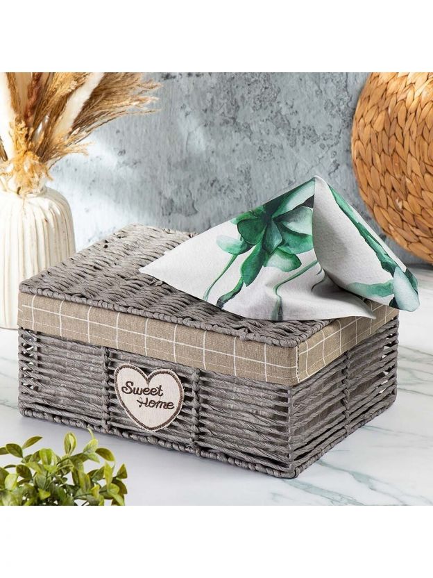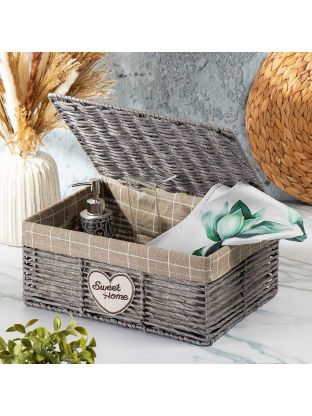 Корзина 38х28х17 см, прямоугольная, плетеная, полимер, с крышкой, Y4-7630