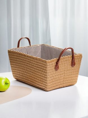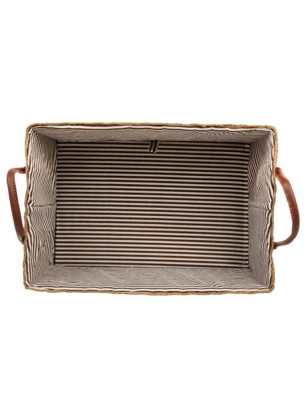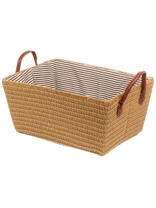 Внутренняя текстильная вкладка защищает содержимое от пыли и повреждений, а также облегчает уход за изделием. Прямоугольная форма обеспечивает рациональное использование пространства на полке, в шкафу или на стеллаже. Объем 7 литров позволяет разместить все необходимое, сохраняя порядок и чистоту в доме. Плетеная структура из полиэстера гарантирует долговечность и устойчивость к износу, а также легкость ухода — достаточно протереть влажной салфеткой.