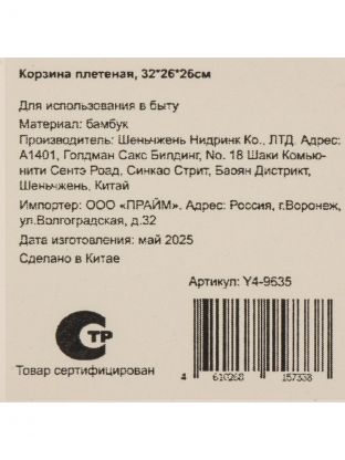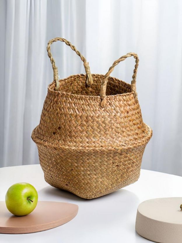 Корзина плетеная 26х26х32 см – универсальное решение для хранения, сочетающее стиль и функциональность. Круглая форма и натуральный бежевый цвет делают аксессуар гармоничным элементом любого интерьера, от классического до современного. Благодаря складной конструкции изделие легко убирается при необходимости, экономя пространство. Бамбук обеспечивает прочность и экологичность, а удобные ручки позволяют без труда переносить корзину даже при полной загрузке. Вместимость 8 литров идеально подходит для хранения белья, игрушек, аксессуаров или хозяйственных мелочей. Такой аксессуар станет незаменимым помощником для поддержания порядка в доме и на даче, а также подчеркнет заботу о деталях в организации пространства.