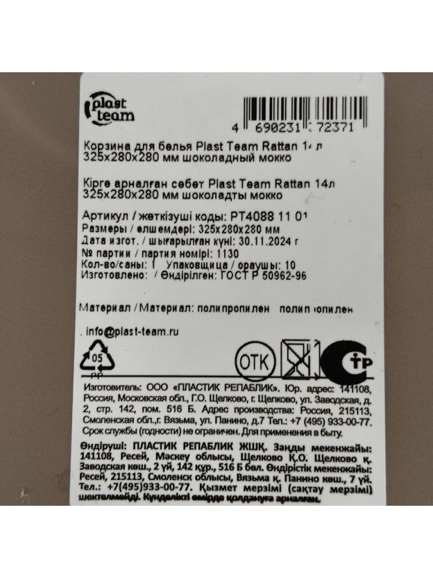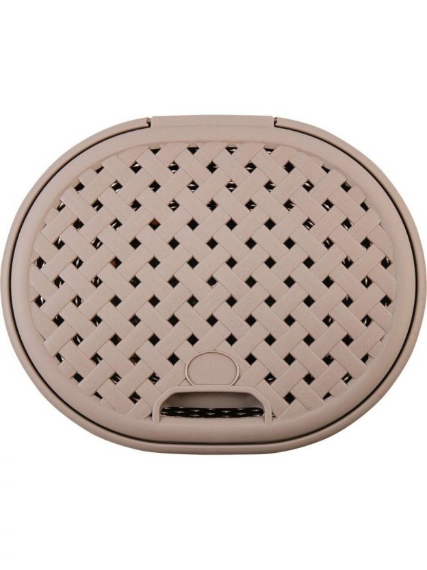 Корзина для белья, 14 л, 28х28х32.5 см, овальная, пластик, шоколадный мокко, с крышкой, Plast team, Rattan, PT408811