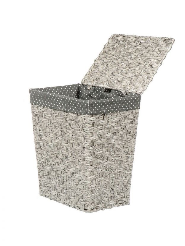 Корзина для белья, 34х24х40 см, прямоугольная, плетеная, полимер, полиэстер, серая, с крышкой, Y4-7635