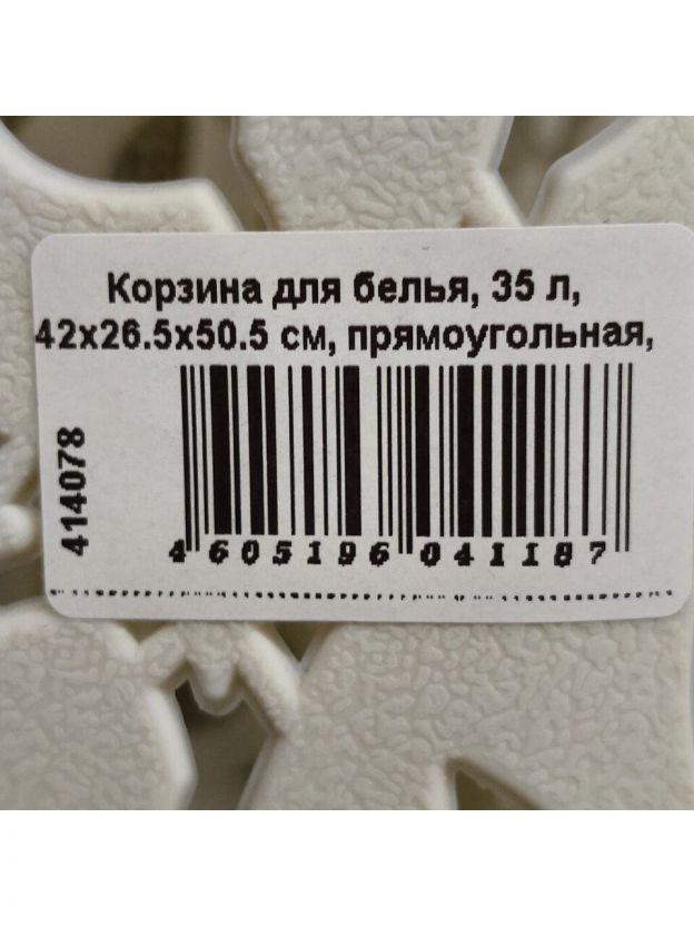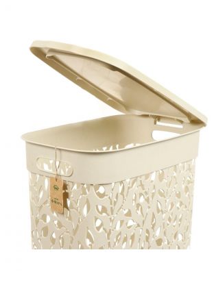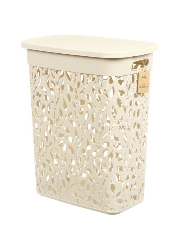 Корзина для белья, 35 л, 42х26.5х50.5 см, прямоугольная, пластик, белый ротанг, с крышкой, Idea, Флора, М 2620