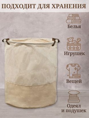 Корзина для белья, 40х50 см, цилиндрическая, полиэстер, бежевая, Y6-6570