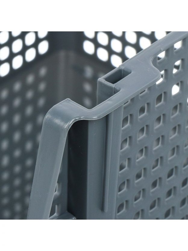 • Установив несколько корзин друг на друга можно создать удобную систему хранения, своеобразную этажерку или стеллаж с ящиками. При этом пустые ящики удобно хранить - они вставляются друг в друга, обеспечивая компактное хранение.