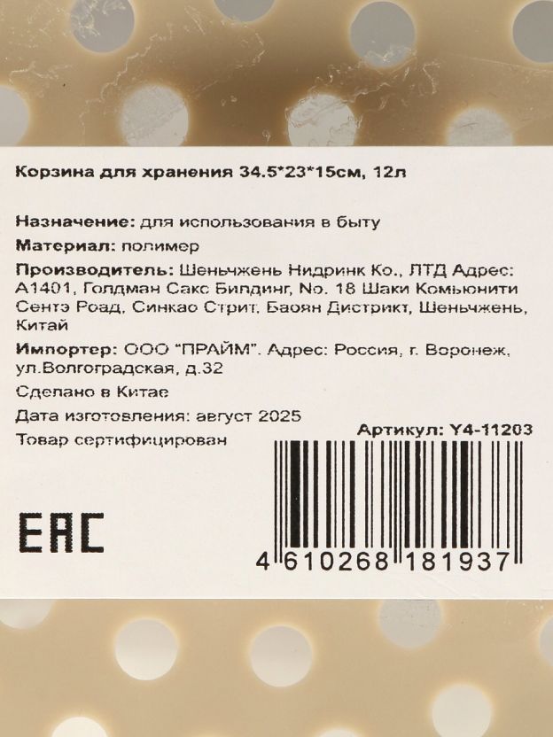 Часто спрашивают: «Как выбрать корзину для хранения для дома или дачи?» — этот вариант подойдёт для хранения белья, игрушек, бытовых мелочей, косметики, аксессуаров. В отличие от плетёных и тканевых моделей, пластиковая корзина не требует особого ухода и устойчива к загрязнениям. Если вы ищете, какая корзина лучше для хранения на балконе или в кладовке, обратите внимание на отсутствие крышки и вентиляцию, что предотвращает появление запаха и сырости. Бежевый цвет гармонично впишется в любой интерьер, а отсутствие текстильных вкладок упрощает уход.