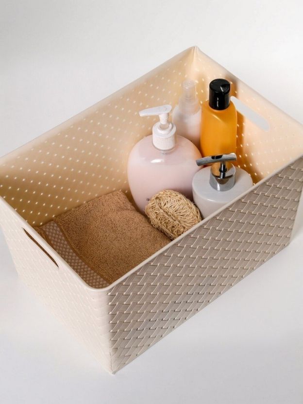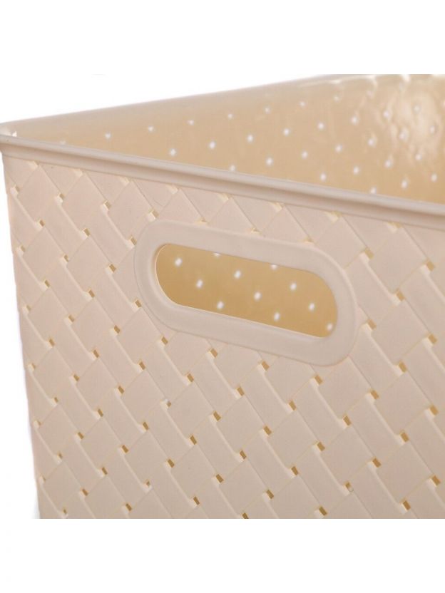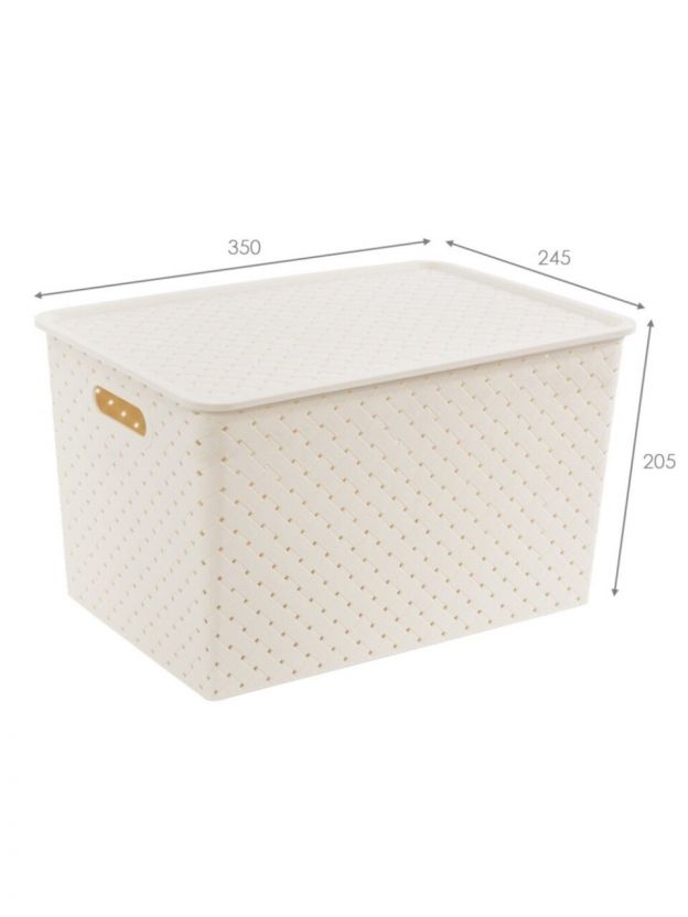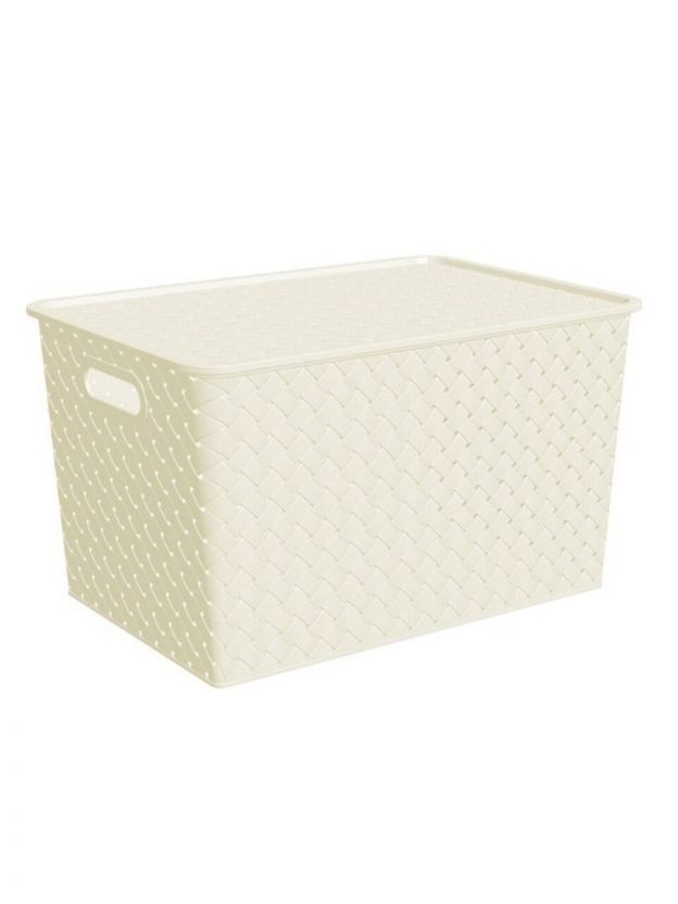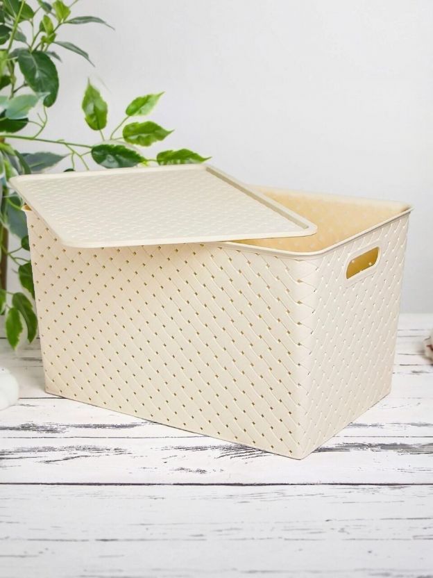 Корзина для хранения, 14 л, 35х24.5х20.5 см, прямоугольная, плетеная, пластик, слоновая кость, с крышкой, Violet, Береста, 523126