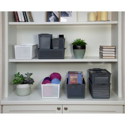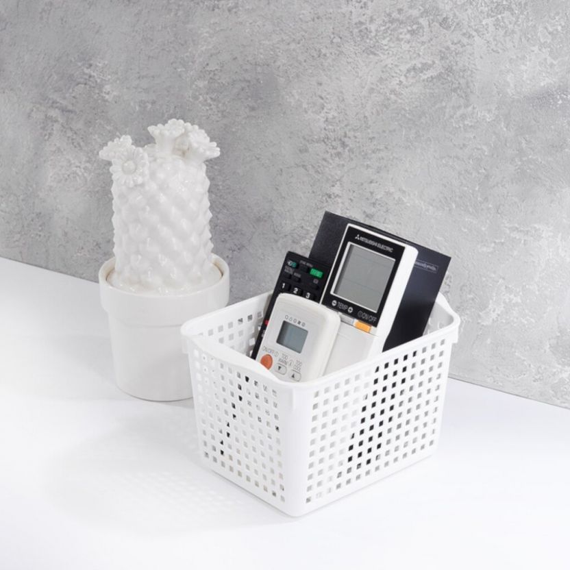 Емкость из пищевого пластика для хранения и переноски мелких аксессуаров и продуктов питания. Оптимальна для косметики и средств личной гигиены, продуктов питания и медикаментов, канцелярских товаров, товаров для творчества и многого другого. С ручками обтекаемой формы корзину удобно перемещать. Перфорация на корпусе универсальна для самых разнообразных стилей интерьера и делает изделия данной серии легкими и проветриваемыми.