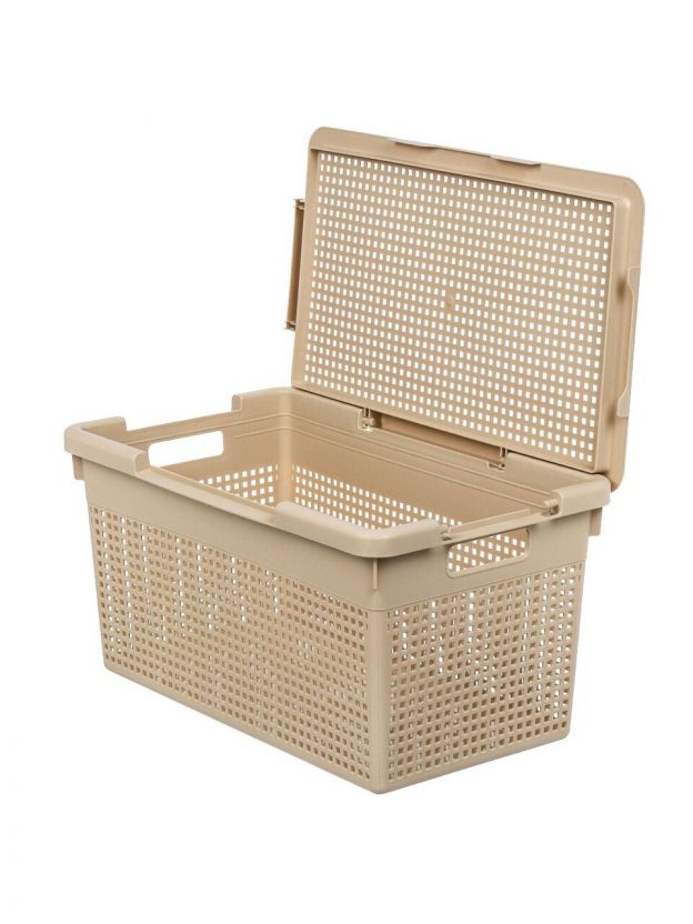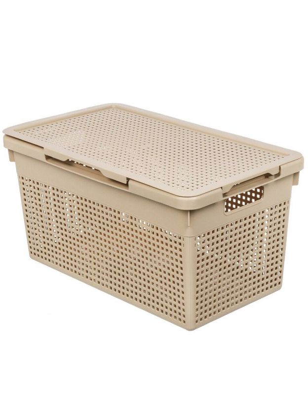 Корзина для хранения, 21 л, 45х26х24 см, прямоугольная, пластик, латте, с крышкой, Violet, Лофт, 562120