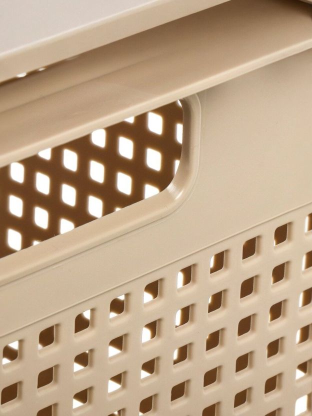 • Размеры ящика и устойчивая крышка позволяют поставить несколько корзин одну на другую.