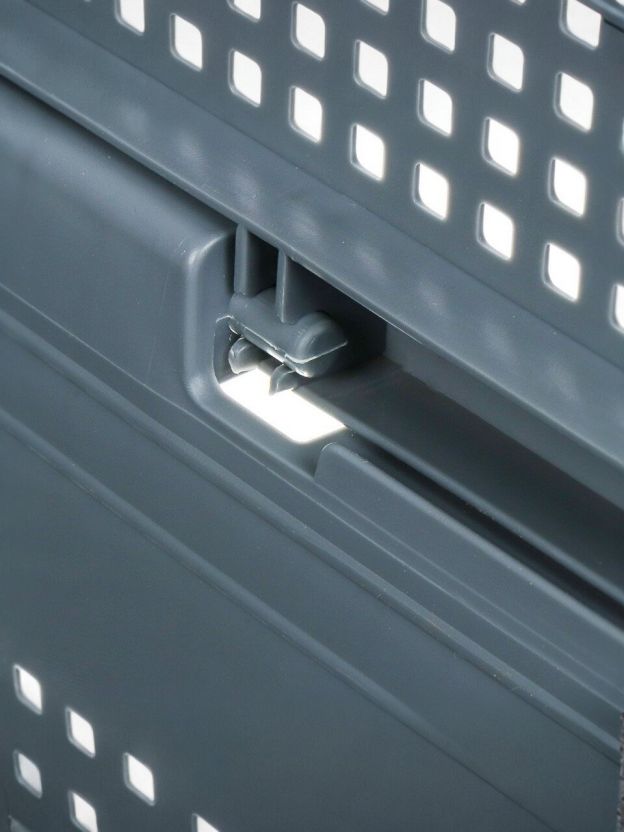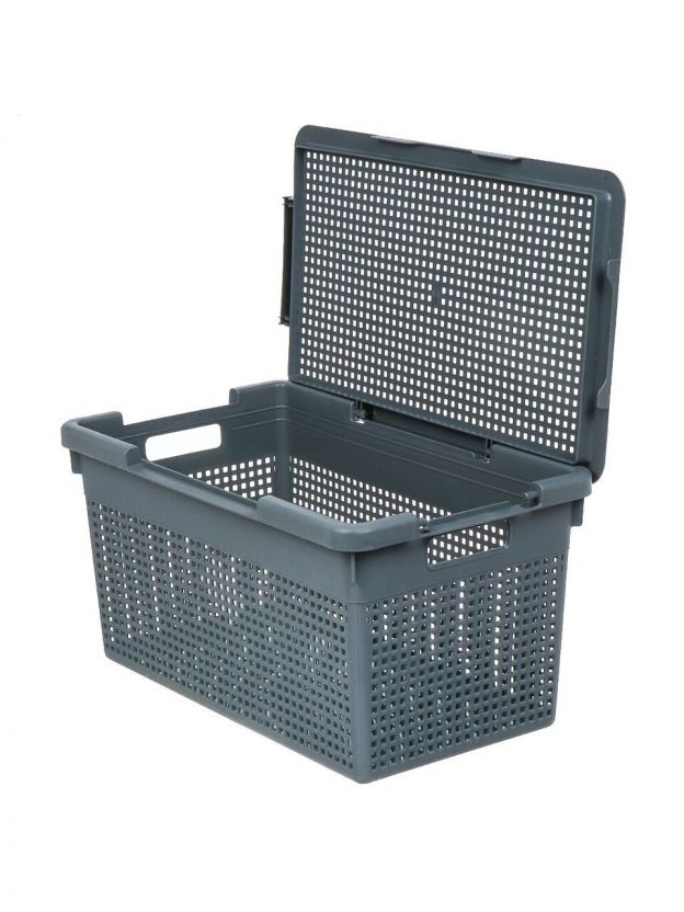 - Размеры ящика и устойчивая крышка позволяют поставить несколько корзин одну на другую.