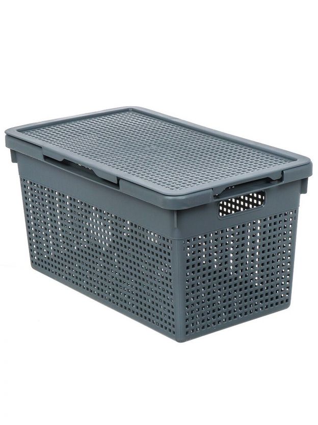 Корзина для хранения, 21 л, 45х26х24 см, прямоугольная, пластик, серая, с крышкой, Violet, Лофт, 562118