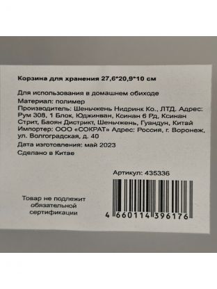 Корзина выполнена из прочного пластика. Она предназначена для хранения различных бытовых вещей и продуктов.