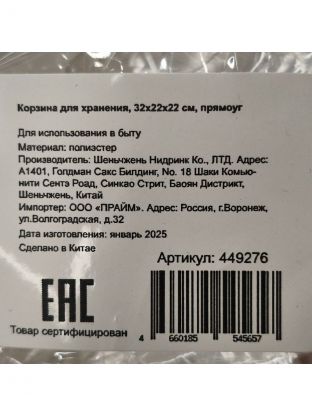 Корзина для хранения, 32х22х22 см, прямоугольная, серая, Y4-7234