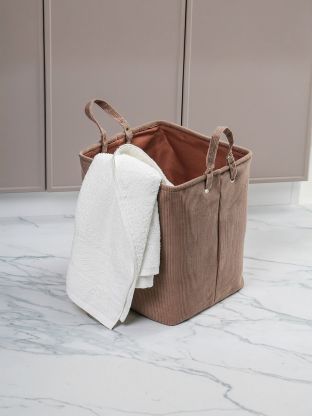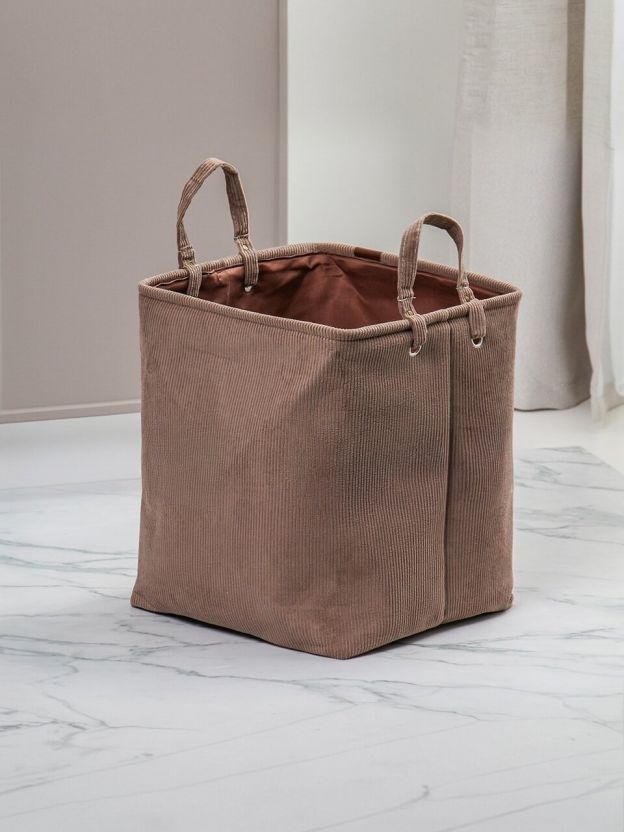 Часто спрашивают: как выбрать корзину для хранения? Эта модель выделяется вместимостью и прочностью: в отличие от пластиковых или плетёных аналогов, вельвет не царапает пол и не ломается при нагрузке. Ручки обеспечивают комфортную переноску даже при полной загрузке. Нет крышки — удобно для быстрого доступа к содержимому. Универсальное назначение: можно использовать для детских вещей, аксессуаров, хранения сезонной одежды или как декоративный элемент. Подходит ли для подарка? — Да, лаконичный дизайн и премиальный материал делают корзину отличным вариантом для презента.