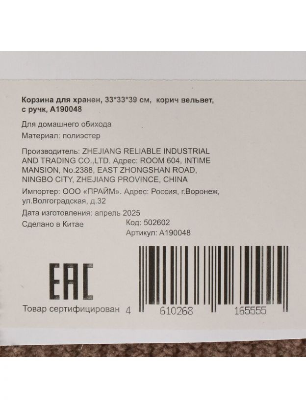 - Мягкий вельвет и складная конструкция: корзина гармонично впишется в любой интерьер и экономит место при хранении.