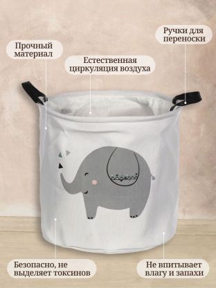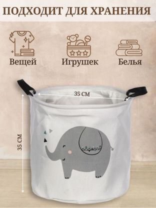 Корзина для хранения, 35х35 см, круглая, полиэстер, серая, слоник, Y4-7075