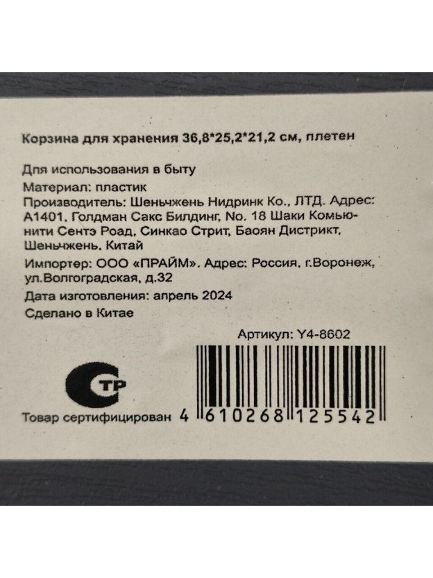 Идеальное решение для организации пространства — плетеная корзина для хранения из пластика, размер 36.8х25.2х21.2 см. Элегантный серый цвет прекрасно впишется в любой интерьер, добавляя стиль и функциональность.