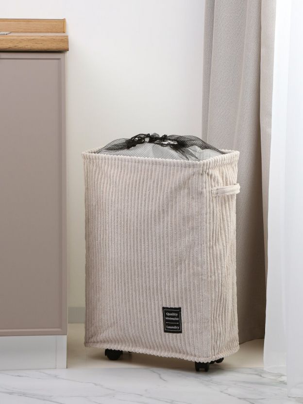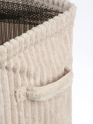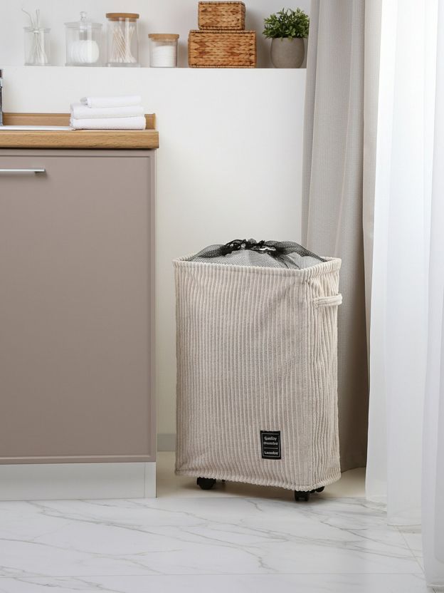- Оптимальный размер 39х19х54 см и текстильная вкладка из фланели — вместимость для белья, полотенец, детских вещей, при этом корзина легко помещается в узких пространствах.