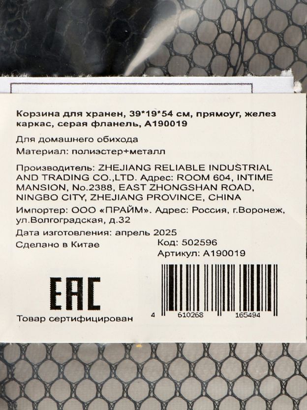 Закажите корзину для хранения 39х19х54 см по выгодной цене — надёжное решение для порядка и комфорта в вашем доме. Быстрая доставка, гарантия качества и проверенный продавец — выбирайте удобство прямо сейчас.