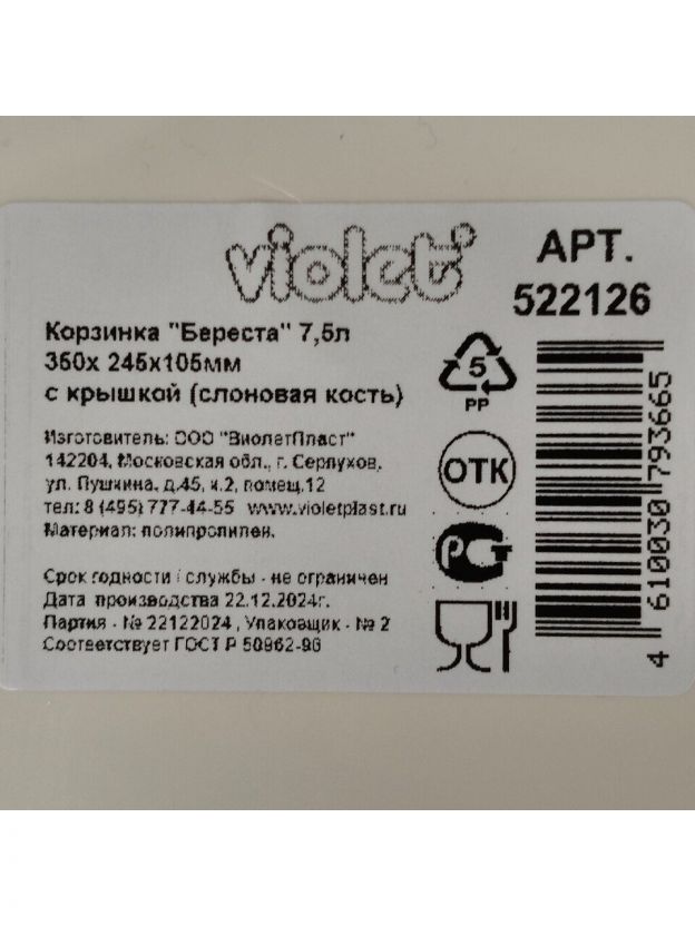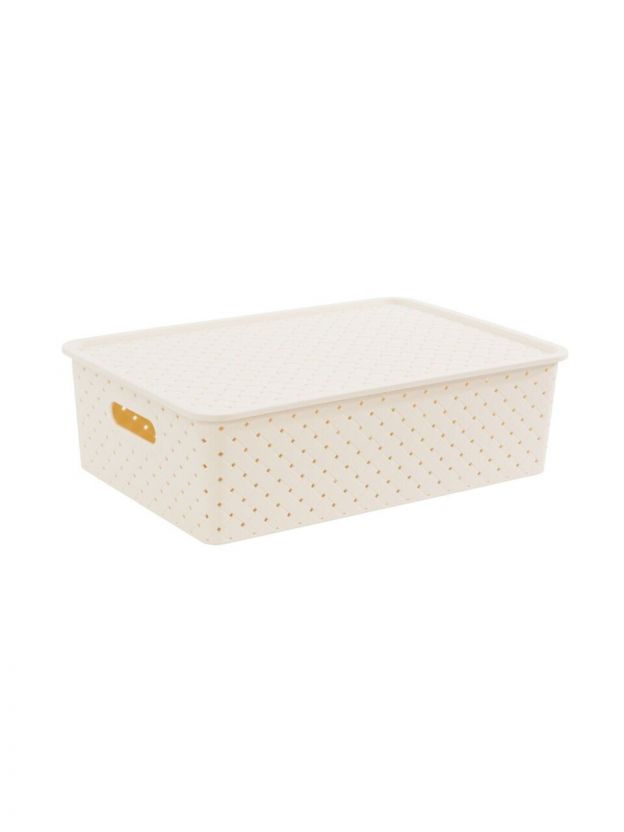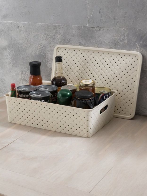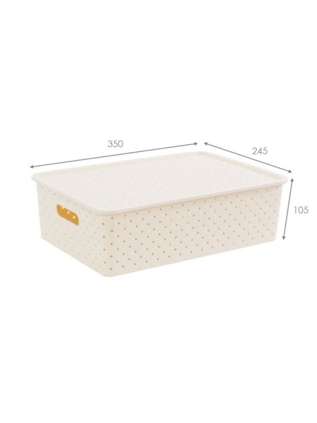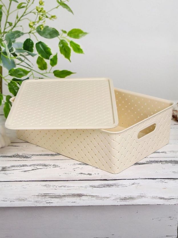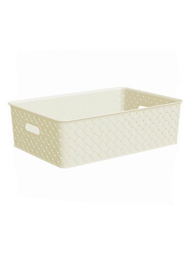 Корзина для хранения, 7.5 л, 35х24.5х10.5 см, прямоугольная, плетеная, пластик, слоновая кость, с крышкой, Violet, Береста, 522126