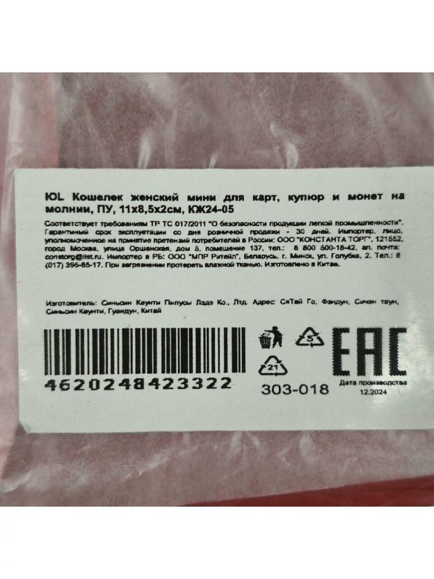 Кошелек женский полиуретан, 11х8х2 см, ЮниLook, КЖ24-05, в ассортименте, 303-018