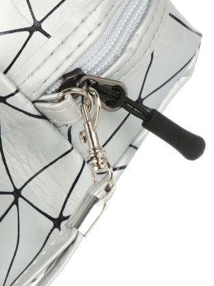 Косметичка 17х7х13 см, с ромбовидной сеткой, A080063, застежка молния, серебристая