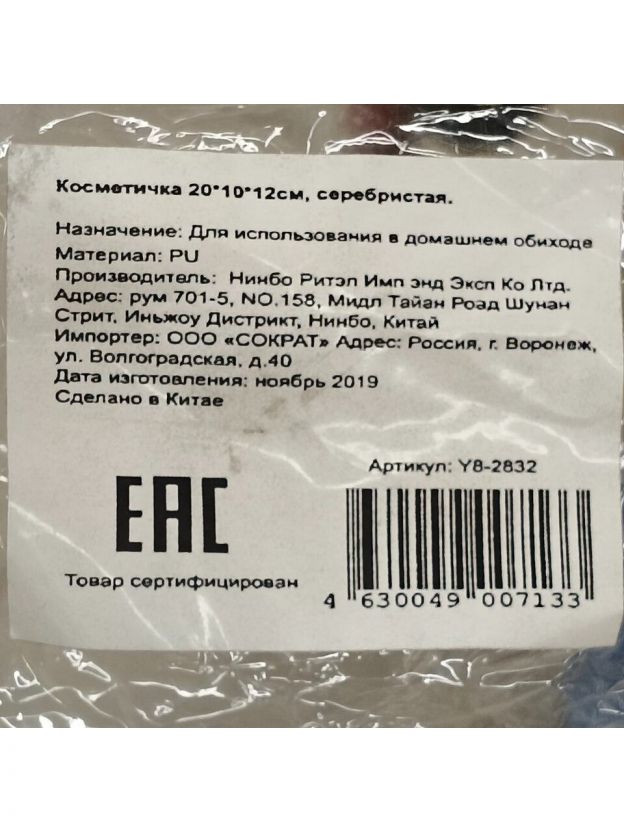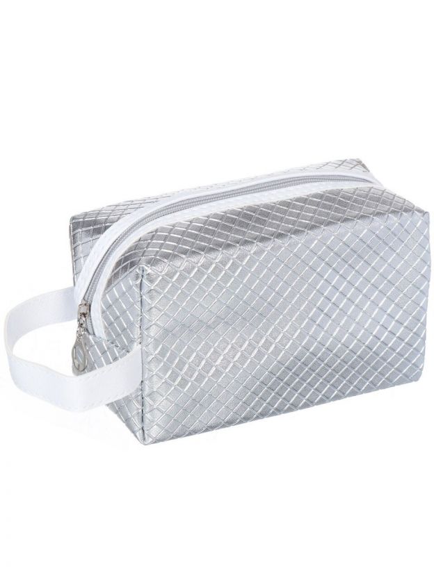 Косметичка 20х10х12 см, с ручкой, Серебристая SPE34445-6, Y8-2832, застежка молния