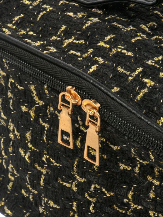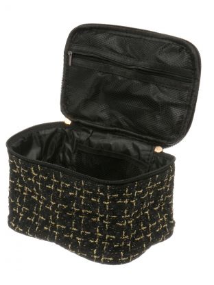 Косметичка 20х14х12.5 см, плетеная, A080066, квадратная, застежка молния, черно-золотая