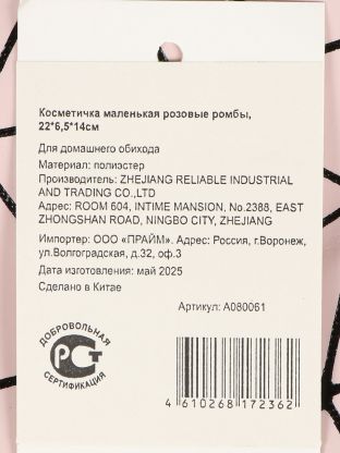 Косметичка маленькая с розовыми ромбами 22x6.5x14 см — компактное решение для хранения косметики дома и в поездках. Закажите недорого с доставкой!