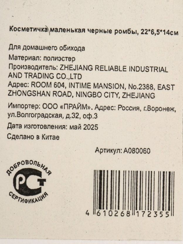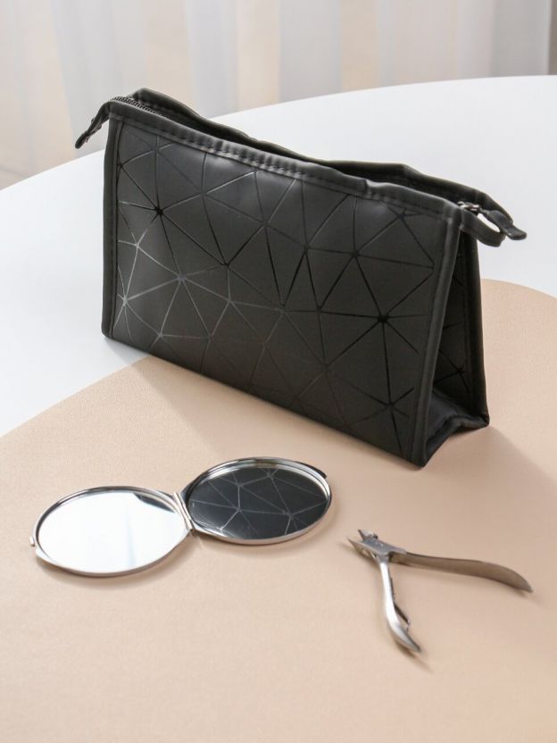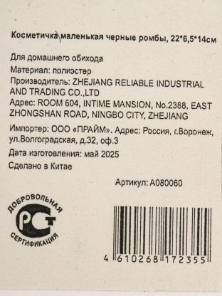 Закажите маленькую косметичку с черными ромбами по выгодной цене — получите практичный аксессуар для хранения и транспортировки косметики с быстрой доставкой и гарантией качества.
