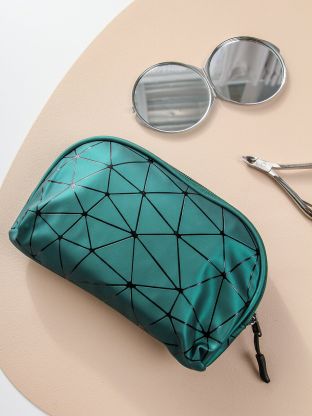 Косметичка 24х4х11 см с ромбовидной сеткой: компактное хранение для косметики и аксессуаров, модный изумрудный цвет, удобно брать с собой.