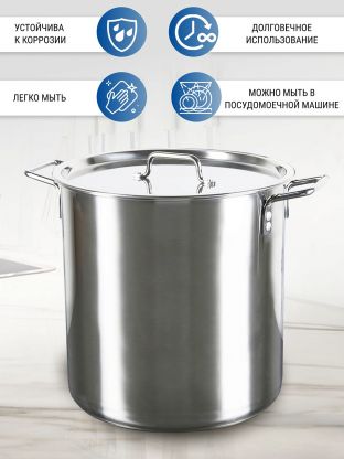 - Высококачественная нержавеющая сталь, металлические ручки на заклепках, зеркальная полировка поверхности, однослойное дно.