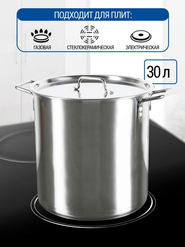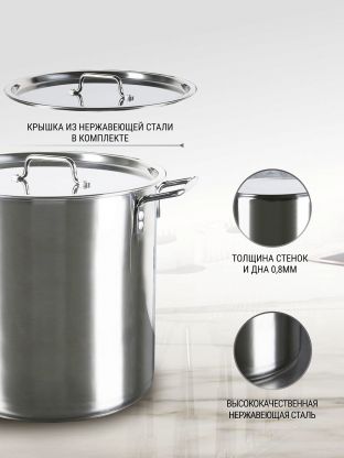 Котел нержавеющая сталь, 30 л, 35х36 см, клепаные ручки, Катунь, Общепит, КТ-ОБ-31 В