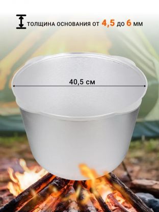 - Для подвешивания над огнем имеется ручка, которая прочно крепится к котлу.