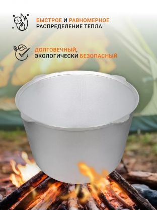 Котелок Kukmara — идеальный выбор для любителей активного отдыха и вкусной еды на природе. Изготовленный из высококачественного литого алюминия, он обеспечивает равномерное распределение тепла и длительное сохранение температуры, позволяя приготовить самые разнообразные блюда — от ароматного плова до нежной каши.