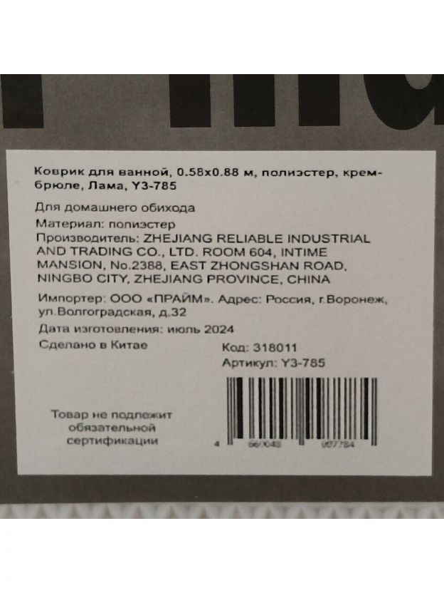 Коврик для ванной, 0.58х0.88 м, полиэстер, крем-брюле, Лама, Y3-785