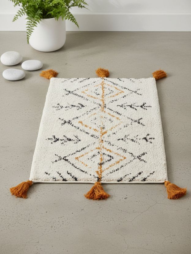 Закажите хлопковый коврик для ванной с бежевыми ромбами прямо сейчас — получите стильный акцент в ванной с гарантией долговечности и бесплатной доставкой при покупке от 2 штук.
