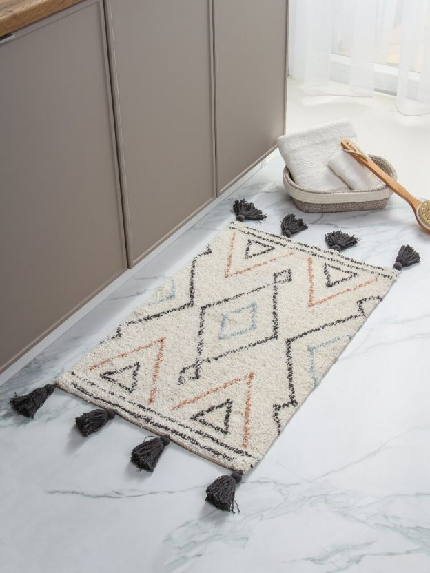 Коврик для ванной из хлопка с геометрическим узором «ромбы» — это удачный выбор для тех, кто ищет недорогой и долговечный текстиль для дома или дачи. Благодаря натуральному хлопку коврик быстро впитывает влагу и быстро сохнет, предотвращая появление плесени и неприятных запахов. Уникальная текстура и декоративные кисточки делают его не только практичным, но и стильным акцентом в интерьере.