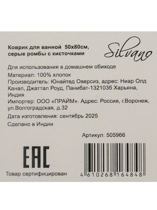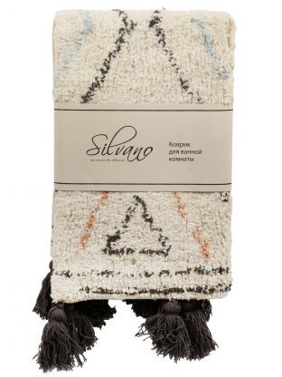 Коврик для ванной Silvano Лиона 0.5x0.8 м: хлопок, стильные серые ромбы, кисточки. Быстро сохнет, не скользит, уют и защита пола — выгодно для дома и дачи.