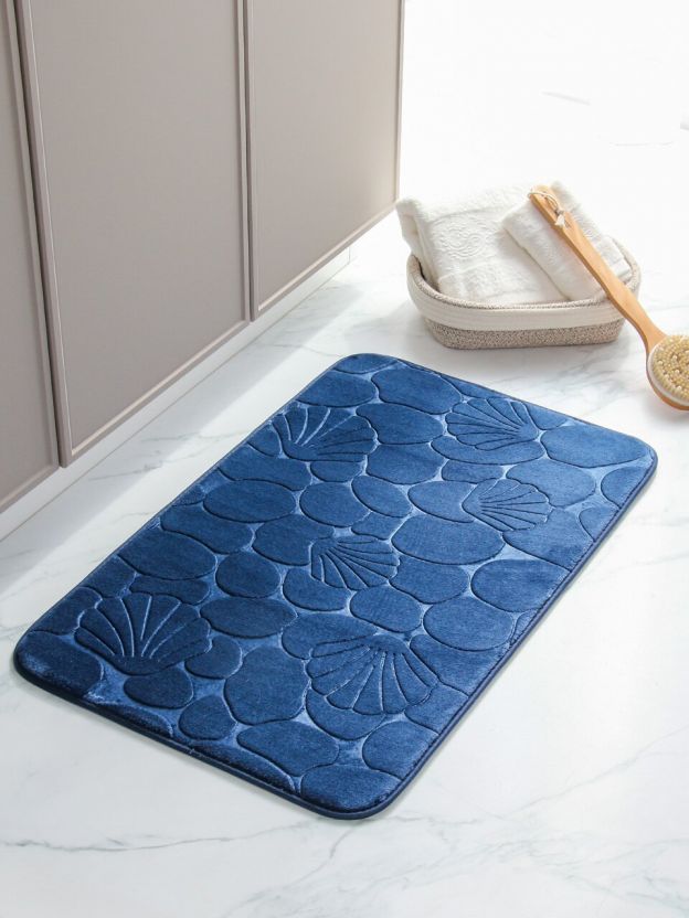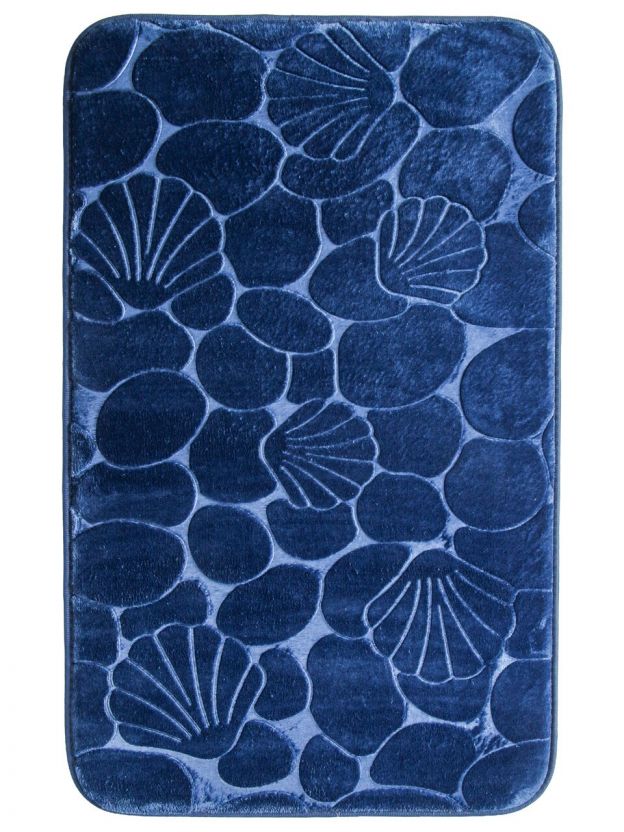 Практичный коврик для ванной 50х80 см с синим узором «галька»: быстро впитывает влагу, легко стирается, удобен для дома и дачи — доступная цена.
