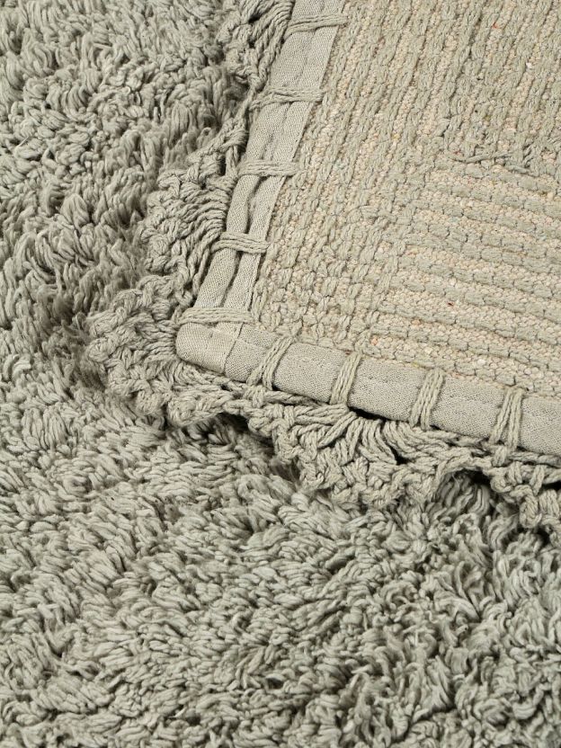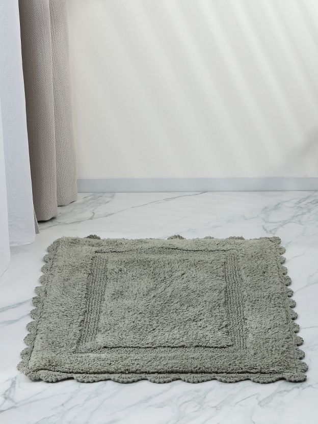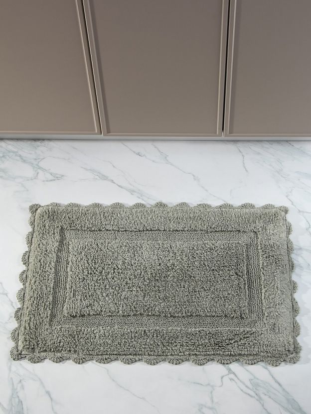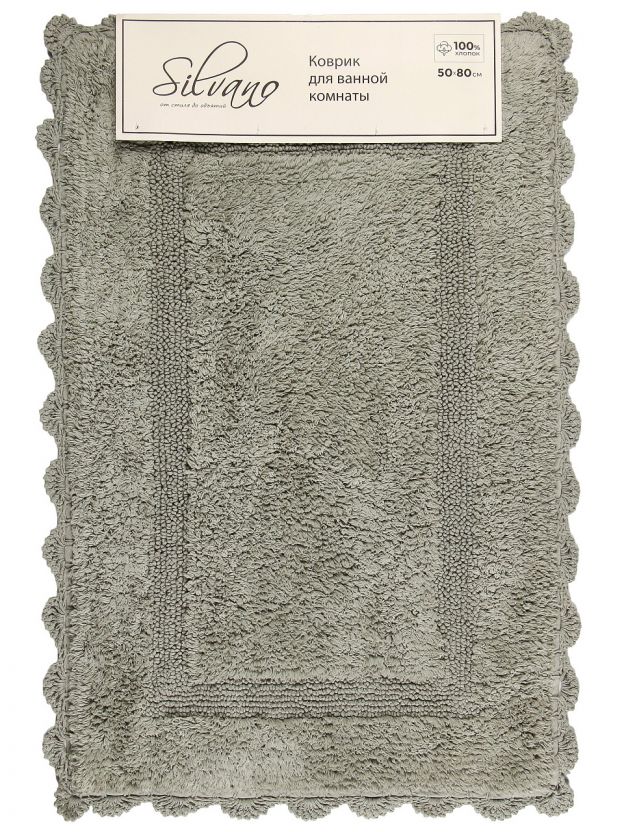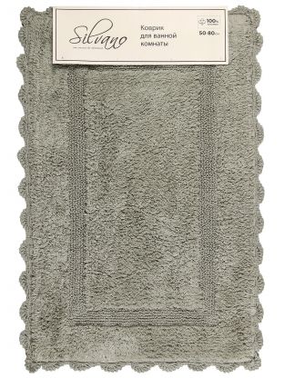 Коврик для ванной Silvano Лиона 0.5х0.8 м: натуральный хлопок, ажурный край, стильный серо-зеленый — уют и комфорт для вашей ванной и туалета.