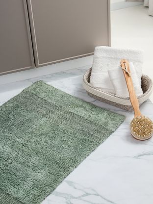 Коврик для ванной 0.5х0.8 м Silvano Лиона: стильный серо-зеленый акцент для уюта в ванной, 100% хлопок, комфорт для ног и быстрое впитывание влаги.