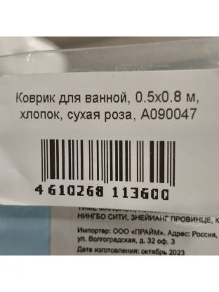 Коврик для ванной, 0.5х0.8 м, хлопок, сухая роза, A090047
