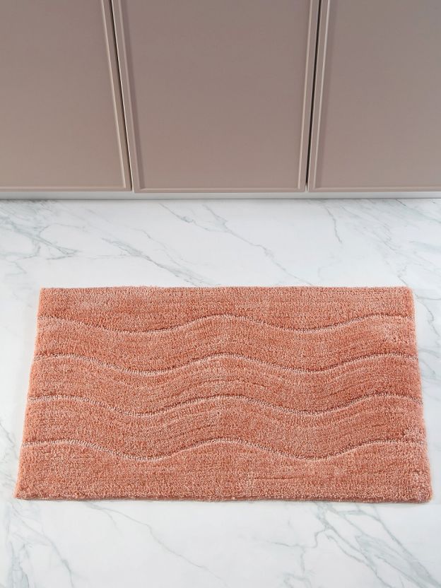 Коврик для ванной, 0.5х0.8 м, микрофибра, волна, персиковый, Silvano, Лиона