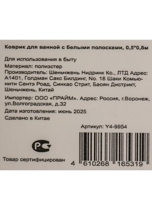 Коврик для ванной, антискользящий, 0.5х0.8 м, микрофибра, Y4-9954, полосатый, с белыми полосками