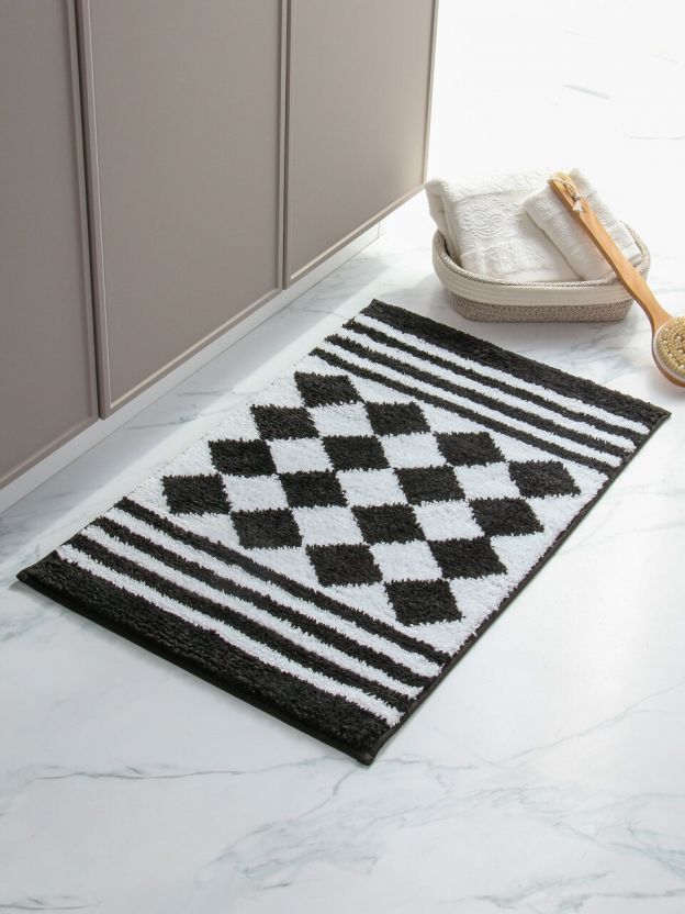 Коврик для ванной, антискользящий, 0.5х0.8 м, микрофибра, черно-белый, Y4-9958, с узором